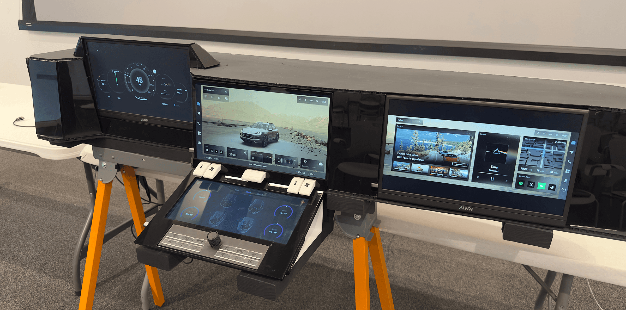 We built a 3D digital twin and a low-fidelity clickable prototype, then ran task-based usability tests. We gain insights for streamlined the information architecture and interaction flows to lower cognitive load and reduce driver-distraction.