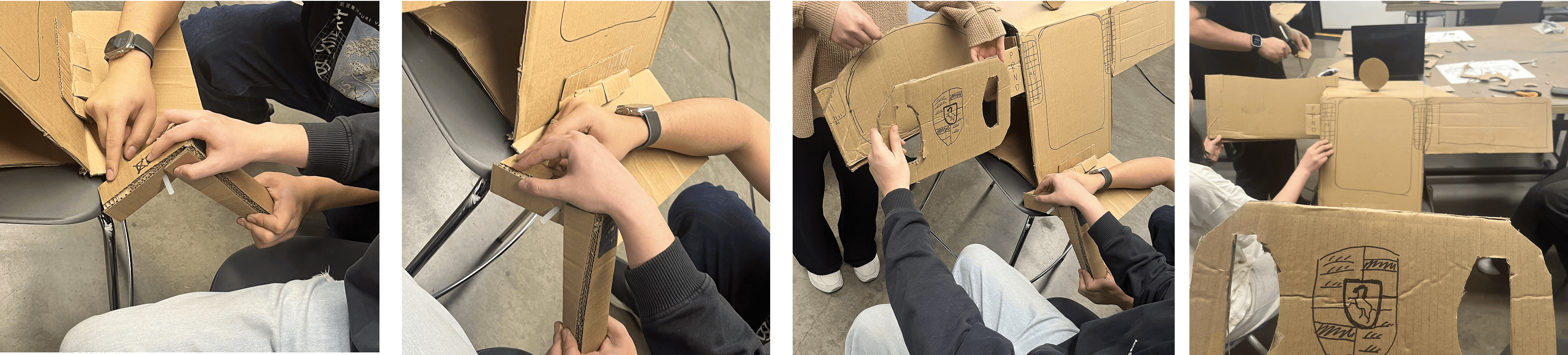 We then conduct the full-scale cardboard prototype to established ergonomic baselines: sightlines, reach envelopes, and control grouping—confirming a driver-centered layout before moving on to digital modeling.