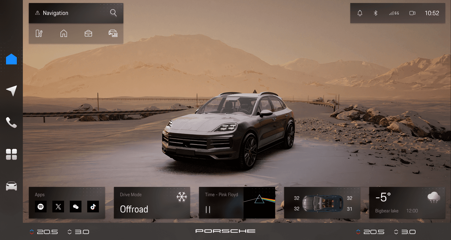 The new HMI system draws from Porsche’s visual DNA—merging quiet luxury, modern precision, and racing innovation—into a consistent, intelligent interaction language.