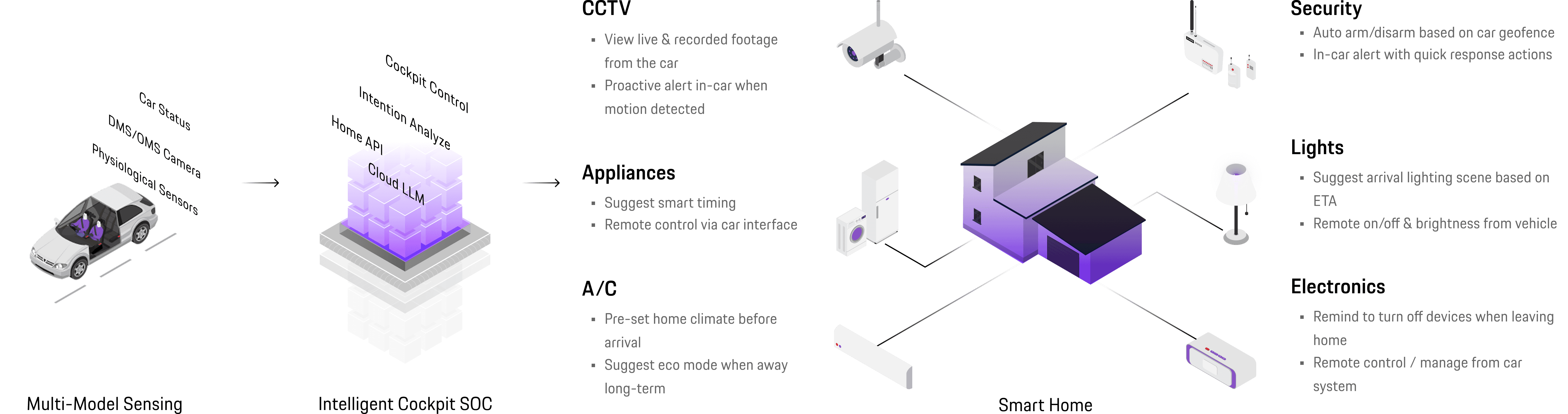 Links your vehicle with your smart home and proactively offers control suggestions while you drive, reducing mental load and making arrivals calmer and safer for the whole family.