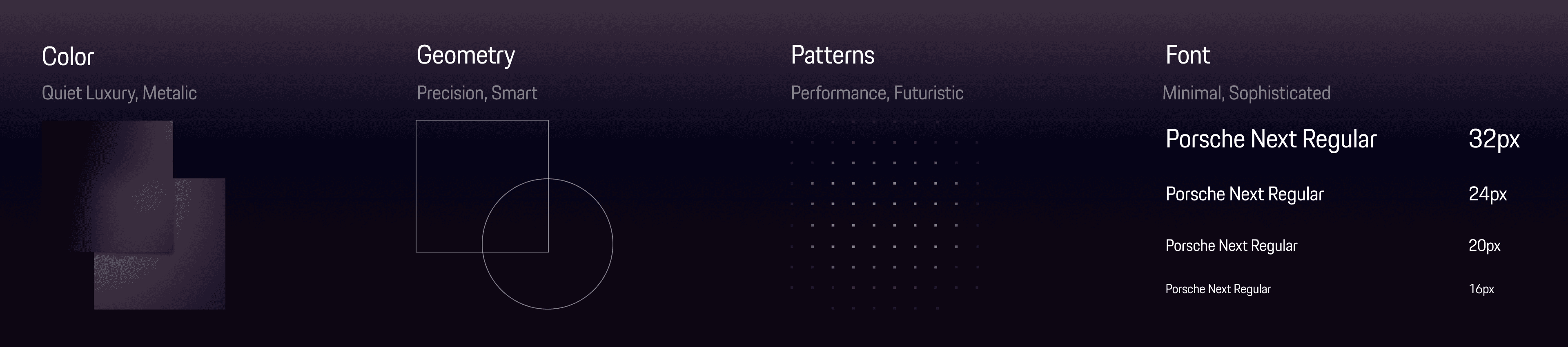 We analyzed Porsche’s brand essence—balancing ambition and tradition, engineering and emotion—to guide a design system rooted in human touch and focused performance.